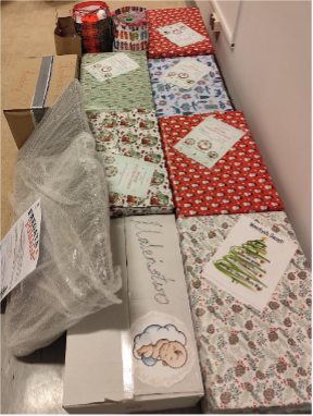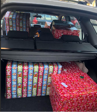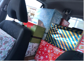 – klasy I-III przygotowały prezenty dla 3 rodzin: ze Sztumu, Malborka i Gniewina – to tylko część 😊 takich samochodów było z pięć!!!!!!!!!