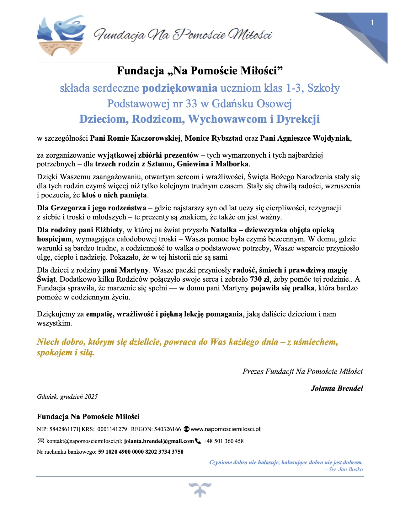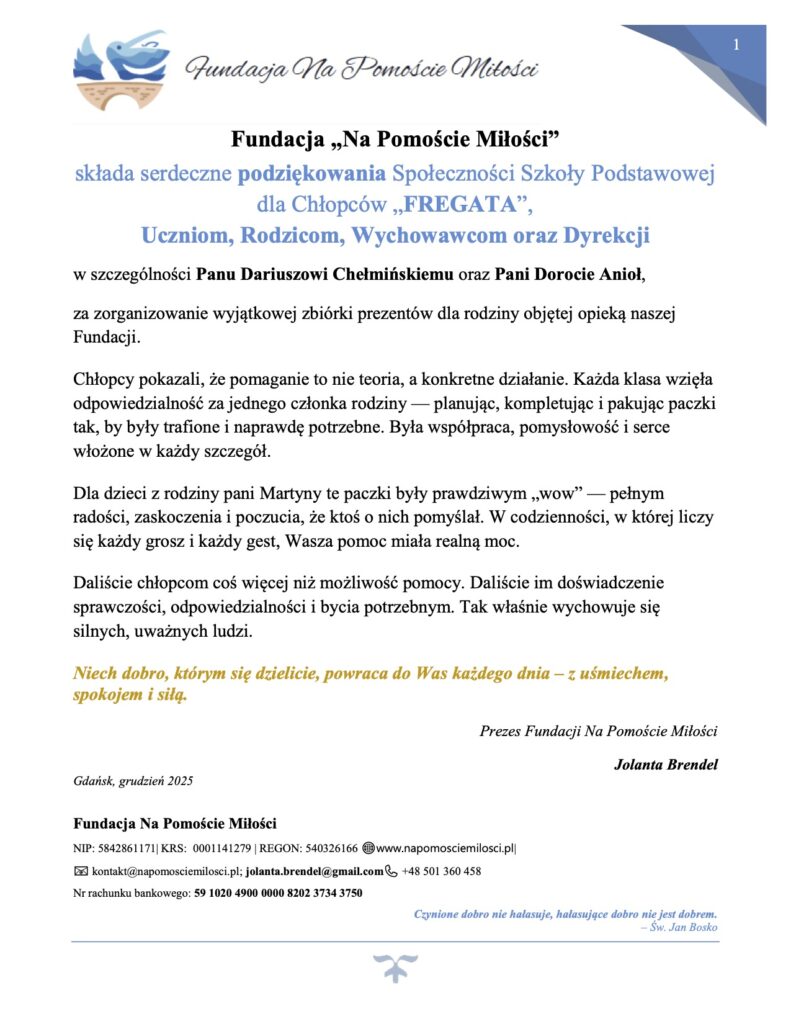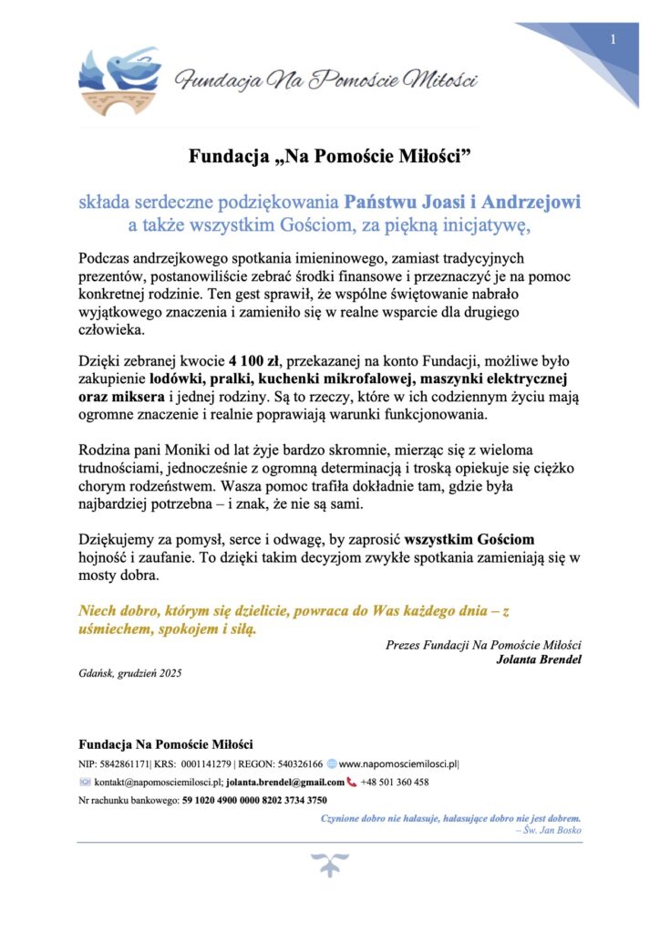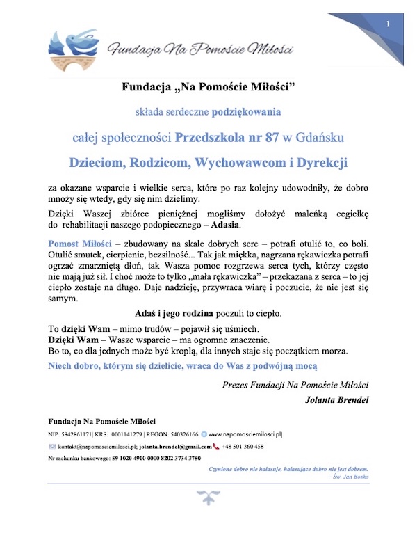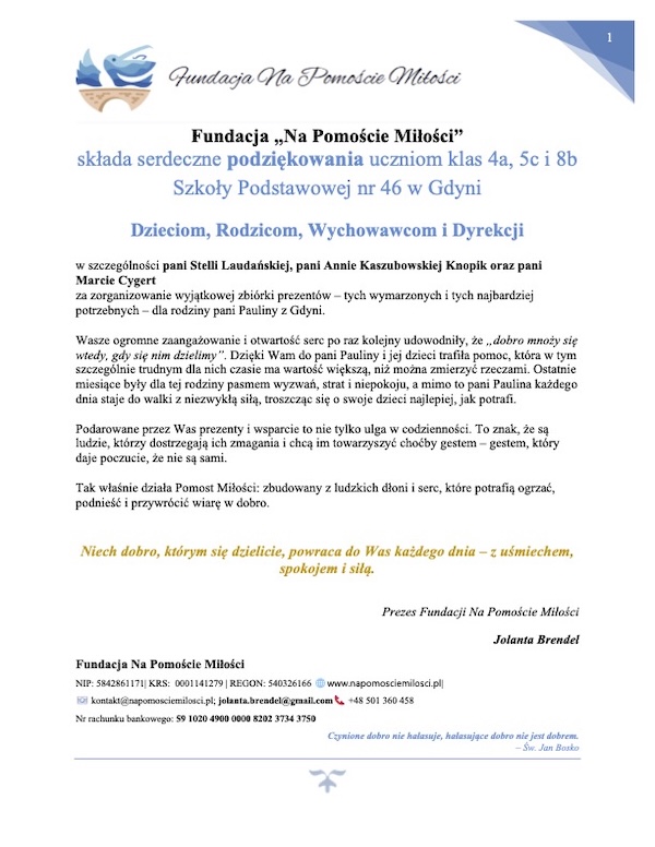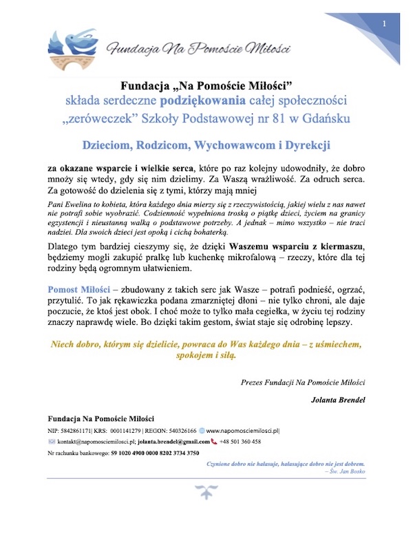 Podziękowania od Fundacji